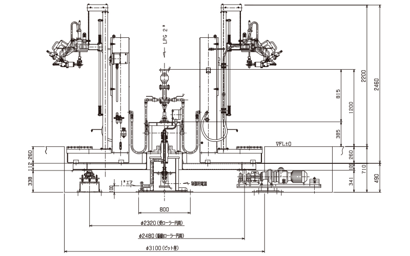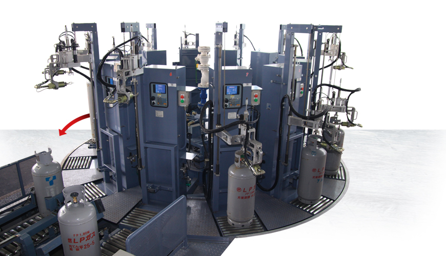 ●容器の搬入搬出は自動化が可能。(オプション) ●業界初の耐圧防爆型液晶モニターを採用。 ●日本語表示で判りやすいインターフェイス。(対話式)