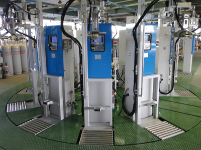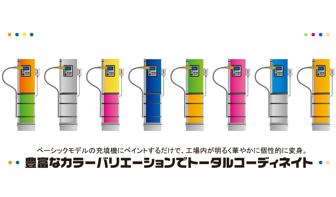 ベーシックモデルの充填機にペイントするだけで、工場内が明るく華やかに個性的に変身。
